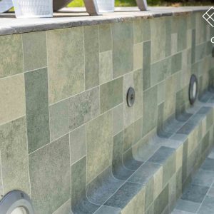 Elbe Amber to ciepła, ziemista paleta barw — od delikatnych odcieni piasku, przez bursztynowe refleksy, aż po głębsze, złamane brązy. Wykończenie imituje naturalne niuanse kamienia; w świetle słonecznym pojawiają się subtelne przejścia tonów, które wizualnie ocieplają otoczenie basenu i harmonizują z drewnianymi tarasami, roślinnością oraz naturalnymi kamieniami. Amber sprawdza się tam, gdzie inwestorzy chcą uzyskać przytulny, „naturalny” efekt bez rezygnacji z nowoczesnej technologii i trwałości powierzchni.